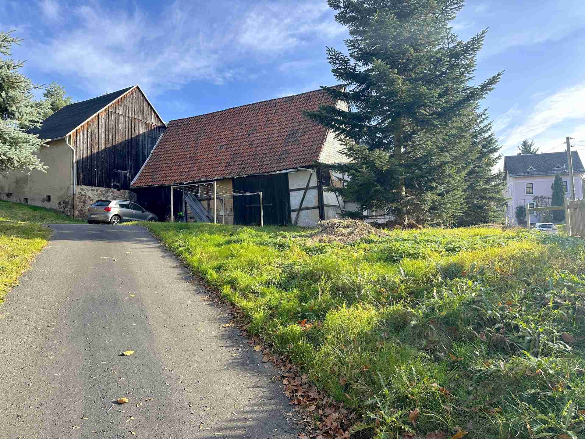 Auf einem großzügigen Grundstück von ca. 3.470 m² vereinen sich ein zweigeschossiges Wohnstallhaus und drei charaktervolle Scheunen zu einem architektonisch reizvollen Ensemble.