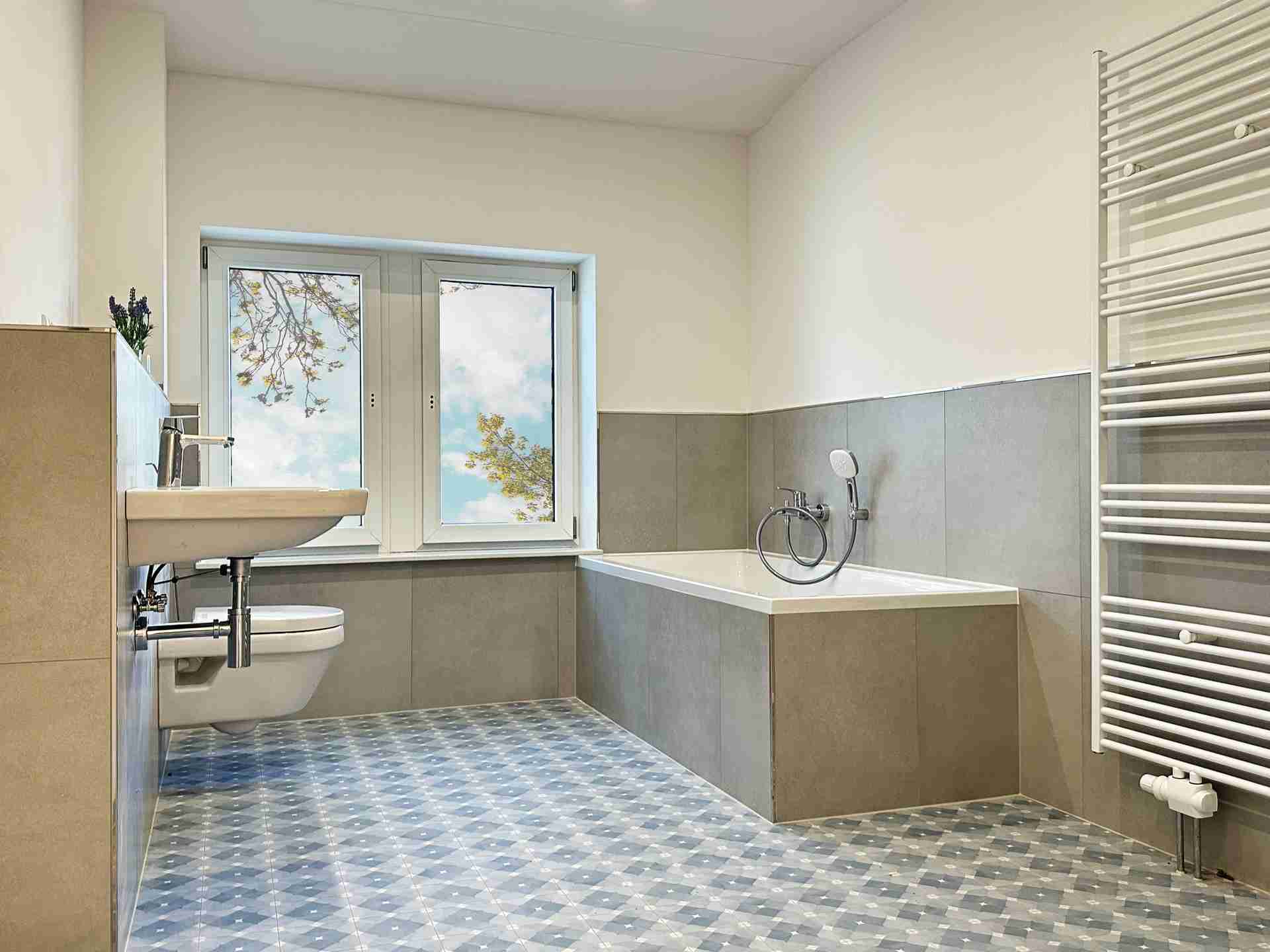 - großzügiges Tageslichtbadezimmer mit Badewanne & Dusche
