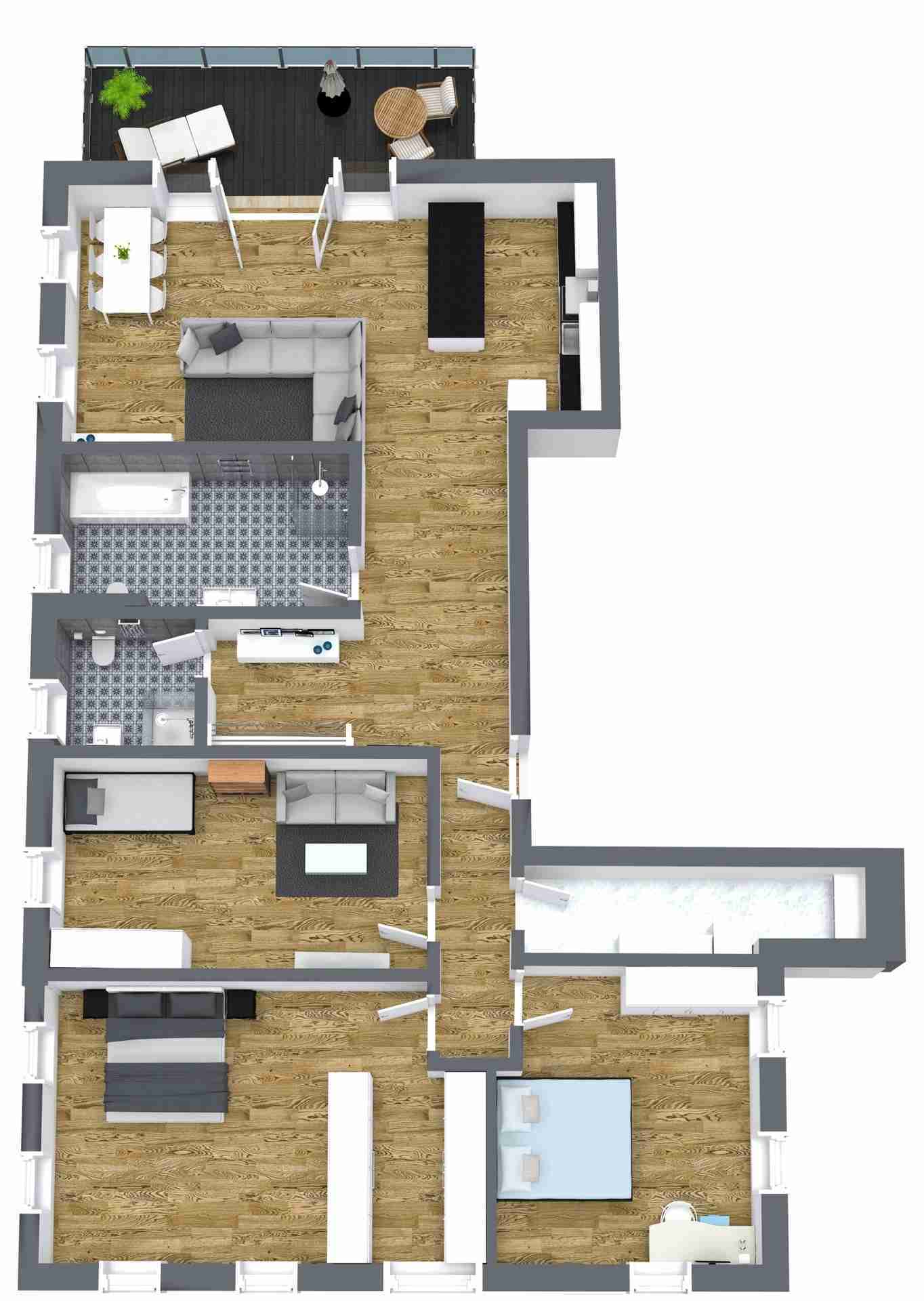 - geräumige Wohnküche mit Zugang zum großen Balkon